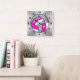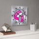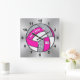 Cuadrado Reloj de voleibol personalizado, rosa, blanco, pla