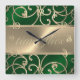 Cuadrado Reloj de Vuela el Tiempo Verde y Dorado