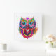 Reloj mostrado en blanco con una impresión ingeniosa colorida bonita del búho. Modifique este reloj para requisitos particulares o cómprelo como es.