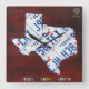 Reloj del mapa de la placa de Tejas por la carretera de peaje del diseño. Google "diseña la carretera de peaje" para ver muchos más pedazos de arte original y de mapas hechos usando las placas del vintage. La carretera de peaje del diseño crea arte hecho a mano y mapas usando las placas recicladas vintage.