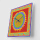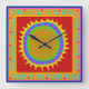 Reloj de pared del suroeste del sol. Reloj en la pared. Reloj cuadrado acrílico naranja amarillo rojo. Virginia Vivier, Vagabond Folk Art.