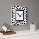 Este reloj blanco y negro elegante, decorativo ofrece un modelo abstracto adornado del curlicue que rodea un cuadrado central.