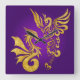 Cuadrado Reloj Feng Shui Golden Phoenix & Dragon - púrpura