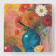 ¿Qué mejor manera de decir el tiempo que mirar este hermoso reloj abstracto de flores? El reloj es una copia de una obra de arte original de medios mixtos de Whirled of Paints.