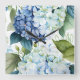 Este hermoso reloj con un patrón de hidrangea azul y blanca se verá impresionante en una casa.