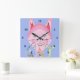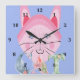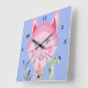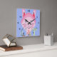Reloj infantil con un lindo gato cómico rosa, de fondo azul, con la palabra "gato" en letras de diseñador. Gracias a Creative Fabrica y el Hungryjpeg por algunos de los elementos del diseño.