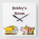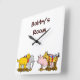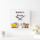 Reloj de pared personalizado con arte vintage de un perro de juguete, caballo, cerdo y elefante sobre ruedas, restaurado a partir del libro de cuentos de un niño. Haga clic en Personalizar para cambiar fuentes, colores de fondo y más.