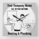 Reloj de pared de servicios de calefacción y fontanería con el nombre de la empresa elegido