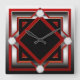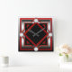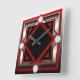 Cuadrado Reloj rojo negro y plateado de pared teñido