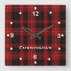 Reloj de pared hermoso con el rojo tradicional, modelo negro, y blanco de la tela escocesa de tartán de Cunningham del clan y puntos blancos y números, alrededor del borde. El texto intrépido blanco lee a Cunningham, que es adaptable de modo que pueda leer cualquier cosa que usted desea. Hace una gran idea para un regalo para cualquier persona.