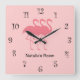Los relojes de decoración de pared de chicas rosadas con flamencos rosados y espacio en monograma pueden añadir un nombre o iniciales en la cara del reloj. Diseño de relojes decorativos en las paredes para chicas, niños, niñas o dormitorios universitarios. Los mejores relojes para bebés, chicas, amantes de la naturaleza o coleccionistas de flamingo.