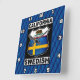 Reloj sueco americano de California. Diseño sueco de California, al estilo de un genial cartel de ruta estadounidense. El texto California Swedish (Sueco de California) está en la parte superior e inferior, con la bandera del Estado de California y la bandera de Suecia dentro del símbolo de la ruta. ¡Excelente para californianos de ascendencia sueca, y para expatriados en la República de California!
