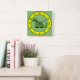 Cuadrado Reloj verde de pared de dinosaurios para niños