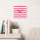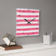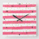 Este reloj cuadrado de moda tiene un fondo rayado rosado y blanco con una pizca de confeti dorado simulada. Si necesita ayuda, envíe un correo electrónico a niteowlstudio@gmail.com.