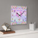 Cuadrado Rosa, Púrpura, Flores, Mariposas Reloj con nombre