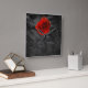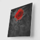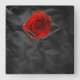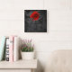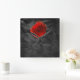 Rosa roja sobre papel negro angustiado como fondo haciendo un peculiar reloj cuadrado en la pared