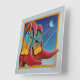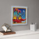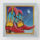 Un colorido par de Cowboy Occidental con estilo Personalizado se alza contra un fondo de cielo nocturno con arranques cayendo y una luna llena en Blues, Rojos y Yellows.