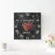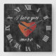 Reloj de pared con fondo negro y gris con corazón en el centro. Las palabras, "te amo más" están en el corazón.