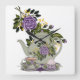 Cuadrado tetera, rosas, quequitos, reloj de la cocina de té
