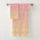 Paneles de las ventanas de toallas. Paneles suaves de vidrio como ventanas en tonos que van desde amarillo mariposa hasta naranjas pastel, hasta corales suaves respaldados por un rubor silencioso.