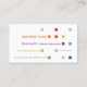 En esta tarjeta de visita, los cuadrados multicolor brillantes aparecen sobre un fondo blanco simple, con los detalles que aparecen en colores coincidentes. Personalizar con tu nombre y detalles.