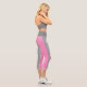 Tanto si planeas comer como descansar, te sentirás muy bien en los pantalones de yoga de estilo capri rosa y gris. Las leggings de entrenamiento son de diseño cuadrado invertido con diferentes tonalidades de grises y rosados, y la banda de cintura gris.