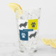 Color de borde silueta de perro amarillo, azul y negro líneas de rejilla patrón abstracto. Las huellas de la pata alternando con la silueta del perro hacen un patrón fresco. Puedes personalizar con el nombre de tus perros o simplemente dejar la raza.