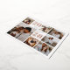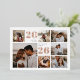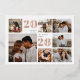 Esta hermosa tarjeta de Navidades moderna incluye siete fotos en una distribución de rejilla, con el año en Relieve metalizado de oro subió, el saludo de vacaciones de su personalizado (mostrado con "deseos más cálidos"), y el nombre de su familia en los cuadrados restantes. Un fantástico diseño de tarjetas de vacaciones minimalistas que muestra tus fotos cuadradas favoritas y horizontales/orientadas al paisaje.