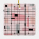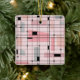 Este personalizable Retro Pink Grid y Starbursts Christmas Ornament es donde el estilo vintage se une a los tiempos modernos. El fondo es rosa claro, con kitsch, cuadrados y rectángulos fuera de kilómetros en gris paloma y tres tonos rosas. Los caprichosos bloques de color están sobredimensionados y trabajados en algunas intersecciones de la cuadrícula. También hay rectángulos negros con líneas verticales y horizontales negras formando un patrón de cuadrícula. Los estribos y cuadros negros se colocan esporádicamente a lo largo de este tapiz de color moderno de mediados de siglo. Este diseño presenta los colores rosas más comunes de los cuartos de baño de época. Agarra tus botas de go y fondo de timbre y disfruta de esto hasta los años 60. El lado opuesto se puede personalizar con un nombre, ocasión y año.