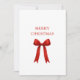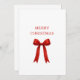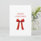 Carta de Navidades con un diseño simple y minimalista con un arco rojo junto con el saludo "Feliz Navidad". Utilice la plantilla para agregar su mensaje personalizado.