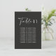 Elegante mesa de boda moderna y barata con presupuesto en blanco y negro número de asientos signo de decoración de la gráfica.