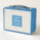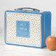 Un diseño de estilo alpino retro y colorido en una caja de almuerzo de estilo vintage / retro que puede personalizarse con el nombre de su hijo. El texto se puede añadir al frente con el docente, la nota escolar u otro mensaje. Inspirada en los tipos de letra retro y el diseño boho, esta portada puede ser personalizada con un nombre, monograma u otro texto. Colores neutros en cuanto al género: morado, verde, naranja, amarillo, verde azulado, turquesa, gris, marrón, crema.