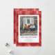 Celebra el comienzo de un nuevo año y un nuevo capítulo con este diseño de foto moderno de cuadro escocés rojo. Con un borde geométrico audaz y tipografía limpia, es perfecto para compartir la emocionante mudanza o logro de tu familia en un estilo navideño atemporal.