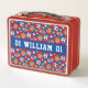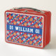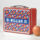 Esta caja deportiva de almuerzo metalizado con un patrón deportivo multibaloncesto puede ser de cualquier color que quieras o puedes mantener el color rojo/azul. En el área de personalización puede cambiar las franjas y/o el color de fondo a sus colores favoritos o a los colores de su equipo favorito. Esto puede ser uno o dos colores. También se puede hacer que el patrón de bola deportiva y el patrón de estrella en esta caja de almuerzo sean mayores o menores en la zona de labranza. Personalice esta metalizado caja de almuerzo con un nombre o apellido y un número de jugador. Este es un regalo divertido para los aficionados al deporte.