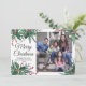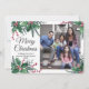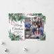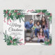 Envíe elegantes saludos alegres y comparta una foto favorita con una tarjeta de vacaciones de collage de fotos personalizados. Todo el texto de esta plantilla es sencillo para el personalizar de incluir cualquier texto, como Feliz Navidad, Felices Fiestas, Saludos de Temporadas, Saludos de Año Nuevo, etc. (IMAGE PLACEMENT TIP: Una manera fácil de centrar una foto exactamente como quieres es recortarla antes de subir al sitio web de Zazzle.) El diseño rojo y verde festivo presenta un fondo blanco, hojas de acuarela con bayas y vegetación de pino, tipografía caligráfica de escritura elegante y una imagen de su elección. A la familia y a los amigos les encantará mostrar esta moderna tarjeta de vacaciones personalizada. ¡Feliz Navidad y Feliz Año Nuevo!
