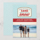 Tarjeta de Navidad con tema de playa con texto en formato o estilo de parche de gorra de camionero para aquellos en climas tropicales con el dicho "cuando la vida te da arena finge que es nieve"