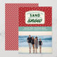 Tarjeta de Navidad con tema de playa con texto en formato o estilo de parche de gorra de camionero para aquellos en climas tropicales con el dicho "cuando la vida te da arena finge que es nieve"