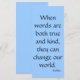 Cuando las palabras son a la vez verdaderas y amables, pueden cambiar nuestro mundo. (Buda) Cambia el color, agrega una imagen, haz que este producto sea tuyo.