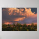 "Cuando marzo sople su cuerno, sus graneros se llenarán de heno y maíz". Detrás de las siluetas de los cielos en ciernes hay un relámpago que atraviesa las nubes bajas de un cielo al atardecer.