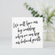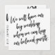 La distinción de esta suite se debe al tipo de letra negrita e informal del guión escrito a mano utilizado para las frases de acento. Si está en condiciones de informar a los clientes de su boda de que ha tenido que cambiar su gran cita, aquí hay una opción audaz. En este artículo, el tipo de letra con letras a mano se utilizó para crear simples gráficos de tipografía. En la parte delantera está "Tendremos nuestro gran boda cuando podamos abrazar a nuestros queridos invitados" y en la parte trasera, "Nuevo plan". Utilice los campos de plantilla para añadir sus datos personales y hacer de este diseño moderno su propio. El fondo puede cambiarse a cualquier color que prefiera. Por favor, contacte con cualquier solicitud especial o para personalizar la asistencia. // 105 //