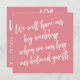 La distinción de esta suite se debe al tipo de letra negrita e informal del guión escrito a mano utilizado para las frases de acento. Si está en condiciones de informar a los clientes de su boda de que ha tenido que cambiar su gran cita, aquí hay una opción audaz. En este artículo, el tipo de letra con letras a mano se utilizó para crear simples gráficos de tipografía. En la parte delantera está "Tendremos nuestro gran boda cuando podamos abrazar a nuestros queridos invitados" y en la parte trasera, "Nuevo plan". Utilice los campos de plantilla para añadir sus datos personales y hacer de este diseño moderno su propio. El fondo puede cambiarse a cualquier color que prefiera. Por favor, contacte con cualquier solicitud especial o para personalizar la asistencia. // 105 //
