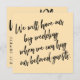 La distinción de esta suite se debe al tipo de letra negrita e informal del guión escrito a mano utilizado para las frases de acento. Si está en condiciones de informar a los clientes de su boda de que ha tenido que cambiar su gran cita, aquí hay una opción audaz. En este artículo, el tipo de letra con letras a mano se utilizó para crear simples gráficos de tipografía. En la parte delantera está "Tendremos nuestro gran boda cuando podamos abrazar a nuestros queridos invitados" y en la parte trasera, "Nuevo plan". Utilice los campos de plantilla para añadir sus datos personales y hacer de este diseño moderno su propio. El fondo puede cambiarse a cualquier color que prefiera. Por favor, contacte con cualquier solicitud especial o para personalizar la asistencia. // 105 //