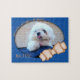 Cuánto cuesta ese Doggie en la ventana JIGSAW PUZZLE-Fotografía de un pequeño cachorro maltés blanco descansando en la zona del salpicadero del parabrisas de un vehículo. Esta cachorro en particular ha tenido su lengua pequeña pegada así desde su nacimiento. Fondo y marco de purpurina creados digitalmente, hueso de lluvia digitalmente y arte de palabras digitales que dice: Cuánto es ese Doggie en la ventana. Hermoso cachorro maltés en la ventana de un auto. Puedes editar la palabra MALTESE para el nombre de un perro, etc, o eliminarla como quieras.
