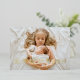 Elegante tarjeta de invitación para bebés para la temporada de vacaciones con tipografía que dice "cuanto más alegre" sobre la foto de tu recién nacido. Funciona mejor con una imagen horizontal.