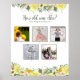 Póster del juego de la ducha floral amarillo "¿Cuántos años tenía ella?" con espacio para 5 fotos personalizadas para complementar nuestras invitaciones. Cambie el texto según sea necesario para un letrero de bienvenida, mensaje especial o juegos de fiesta. Recorte y ajuste sus propias fotos para que quepan en cuadrados según sea necesario.