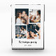 Este sencillo pero ultramoderno bloque de fotos muestra cuatro de tus fotos personales favoritas en una única rejilla de fotos de apariencia estratificada. El diseño en blanco y negro muestra el nombre de tu familia en una tipografía de escritura manuscrita elegante y moderna, y tiene un lugar para el año establecido en un tipo de letra sans serif de coordinación.