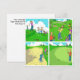 Cuatro ilustraciones de golf muy graciosos. En uno, un golfista está tomando un tiro en un campo de golf. El perdedor-golpea la pelota de golf y sus compañeros de golf encuentran esto hilarante y se están riendo incontrolablemente. En otro, un golfista toma un tiro en un campo de golf y tiene numerosos rebotes de suerte que sorprenden a sus amigos. También un personalizado donde un golfista está atrapado en un búnker y sin tener mucha suerte saliendo de la trampa de arena. Por último, un golfista está en el green, pero pierde su putt por una fracción. Personalizados del caricaturista británico Nigel Sutherland.