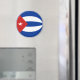La bandera de Cuba ha sido cuidadosamente ajustada a la forma circular de este imán. Una manera decorativa de promover la cultura cubana.