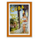Hermoso poster de viajes vintage que anuncia Cuba como la "Isla Festividad de los Trópicos". Muestra a una bailarina española con un hermoso vestido blanco.