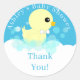 Bebé Cute Rubber Ducky Gracias Pegatina Circular Clásico por sobres y precintos de fiesta. Personalice el uso de nuestra plantilla sencilla.